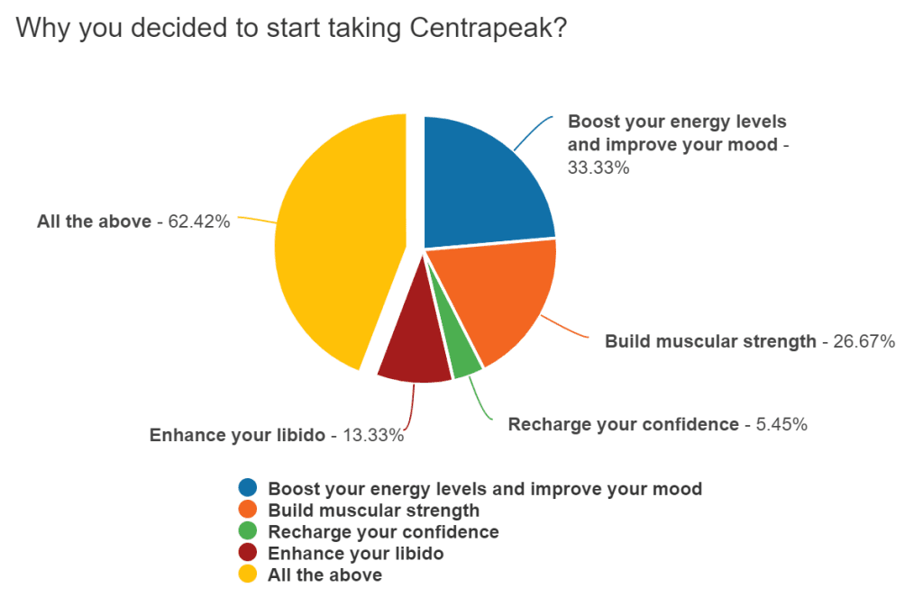 Phenomenal customer support - Review by Dan H. You guys have phenomenal customer support; it's really appreciated! Great customer support with a great product, you can't ask for anymore. Thank you again! Taking Centrapeak For a Couple of Years - David S. Before, I was taking other brands with not much improvement. I decided to do some research for the best natural testosterone booster. All of the reviews out there kept pointing back to Centrapeak. I decided to give it a shot. I noticed improvements in the way I felt as well as my gym performance. I lost fat and gained some good strength. My libido also increased. I've been taking Centrapeak for a couple of years now and will continue to do so.